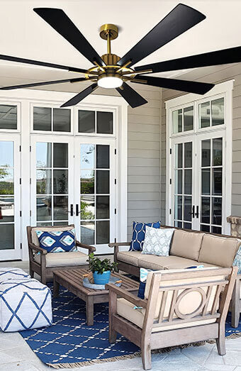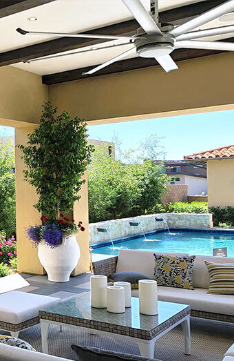 Weather-rated ceiling fan installation for alfresco areas, verandas, and covered outdoor spaces to improve comfort year-round.